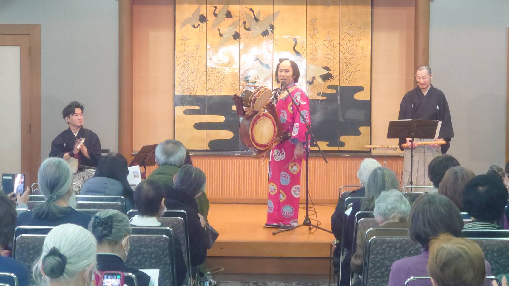 尺八と三味線の生演奏は、やはり格別です。空気を震わせながら響く音色は、耳で聴くというよりも、胸の奥にすっと染み入ってくるようで、自然と心が静まり、深く整えられていくような気がしました。